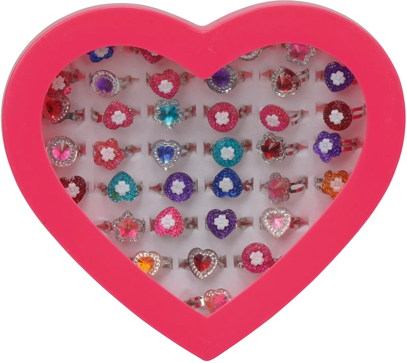 Hjerteboks 36 ringer for jenter, ulike motiver