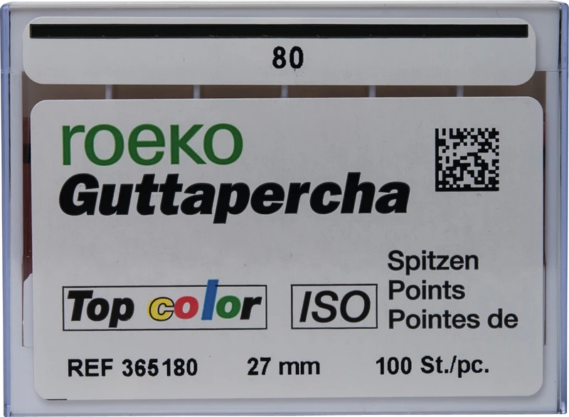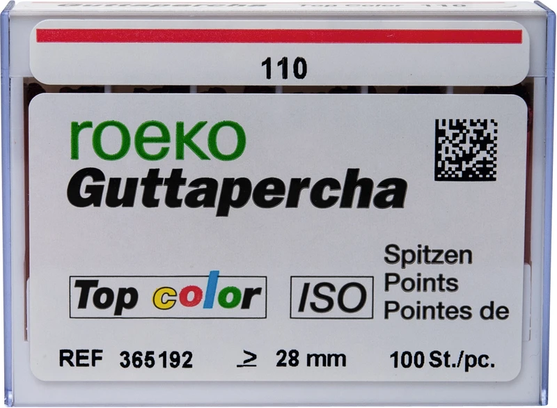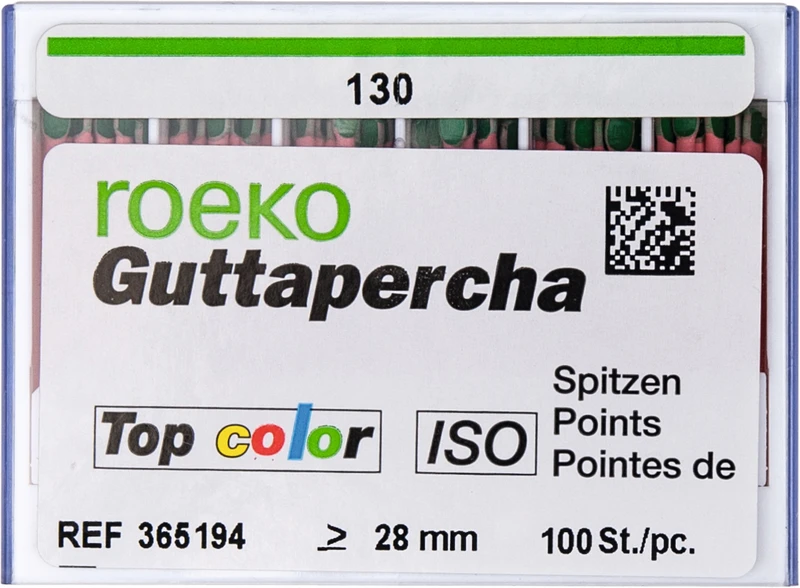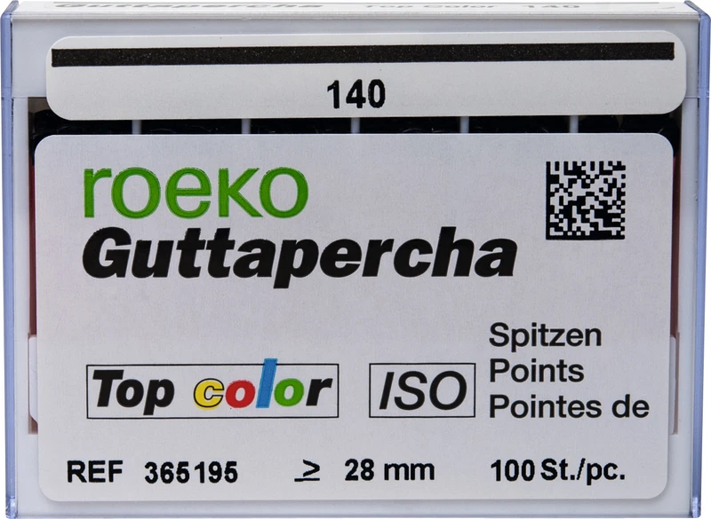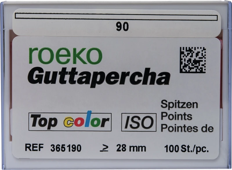 Guttapercha Top color – Kodingen er lagt på jevnere sammenlignet med den tidligere versjonen og dermed bedre synlig. Avflatede ender – spissene kan holdes bedre med pinsett.