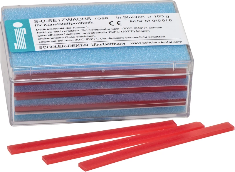 For oppstilling av plasttenner i protetikk. Under størkningen går voksen gjennom en lang seig-plastisk fase og muliggjør dermed enkle korrigeringer av tannstillingen. I avkjølt tilstand blir S-U-SETZWACHS svært hard og fester tennene permanent også under utprøvning i munnen. Størkningstemperatur 66 °C.