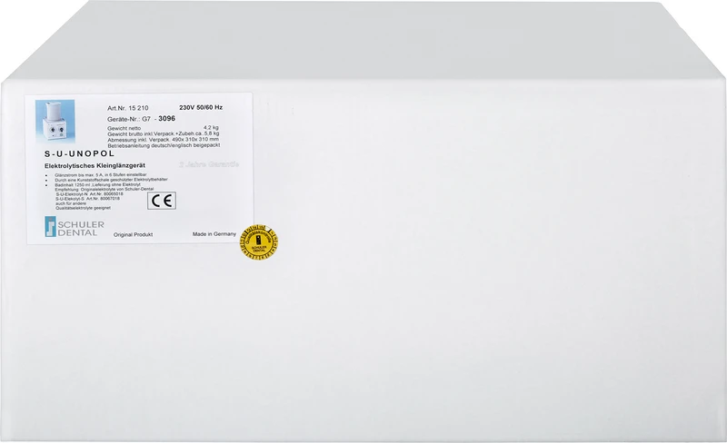 Elektrolytisk småpoleringsenhet for 1 modellgodsprotese. Kompakte utførelse – ideell for små laboratorier. Variabel glansstrøm opptil maks. 5 A, justerbar i 6 trinn. Fremragende resultater ved særdeles enkel håndtering. En plastskål under elektrolyttbeholderen beskytter den elektriske delen.