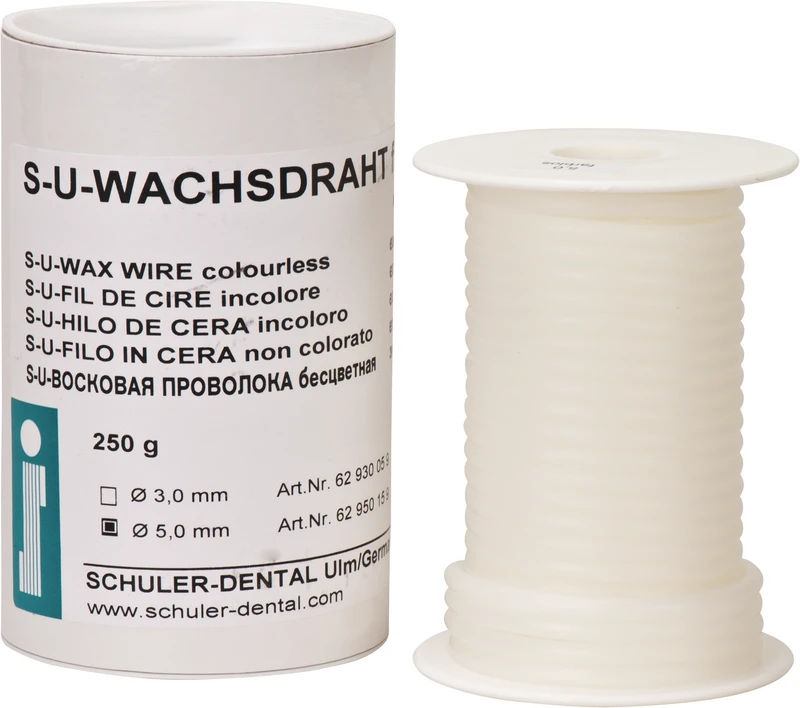 Ekstra myk vokstråd som lippebeskyttelse ved bruk av brackets. Også egnet til avgrensning av funksjonskanter på avtrykk før modellfremstilling. Svært god vedheft til avtrykksmaterialer. Størkningspunkt 59 °C.