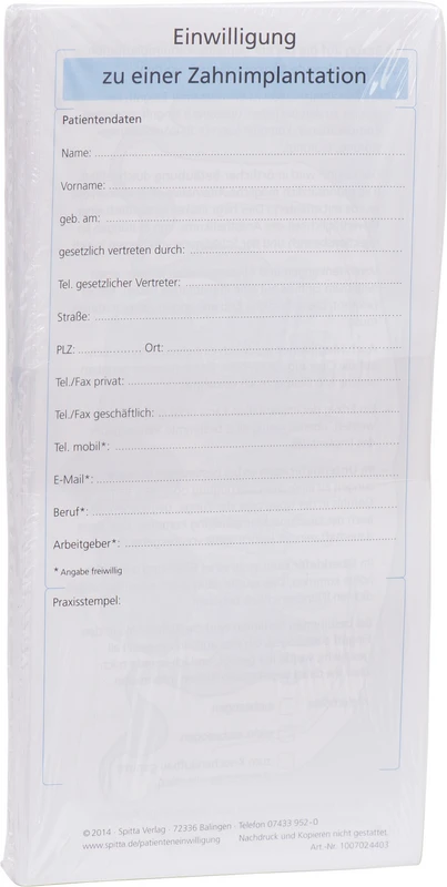 Som ved alle andre tannbehandlinger må også pasienten før en tannimplantasjon få omfattende informasjon. Pasientene bør kjenne alle viktige opplysninger som taler for eller imot en behandling, og de må også få grundig informasjon om etterbehandling.