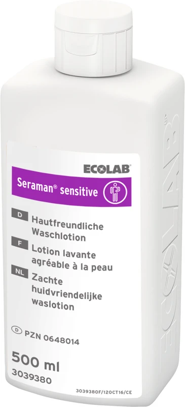 Seraman™ sensitive hudvennlig vaskelotion for sensitiv hud. Moderne og høykvalitets tensider sørger for en skånsom rengjøring av hender og kropp. Bestanddel i vår farge- og duftfrie produktlinje “Pure”.