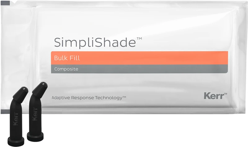 Vi er glade for å kunne presentere Kerrs nyeste forenklede bulk-fill-komposittsystem, SimpliShade™ Bulk Fill og SimpliShade™ Bulk Fill Flow. De nye produktene passer til alle 16 klassiske VITA® farger med bare én nyanse for enklere fargematching og rasjonalisert lagerstyring. SimpliShade™ Bulk Fill og SimpliShade™ Bulk Fill Flow ble utviklet med den av Kerr utviklede Ternary Adaptive Response Technology (ART3 ) og tilbyr enkel håndtering og modellering, fargeblanding for å etterligne den naturlige tannstrukturen og mindre krympestress for bedre randtilpasning.