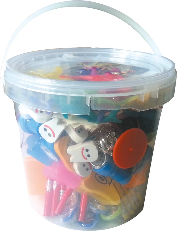 Blanding fra vårt sortiment (inneholder f.eks. blyanter, klistremerker, tatoveringer, ringer, tannbeholdere osv.).
