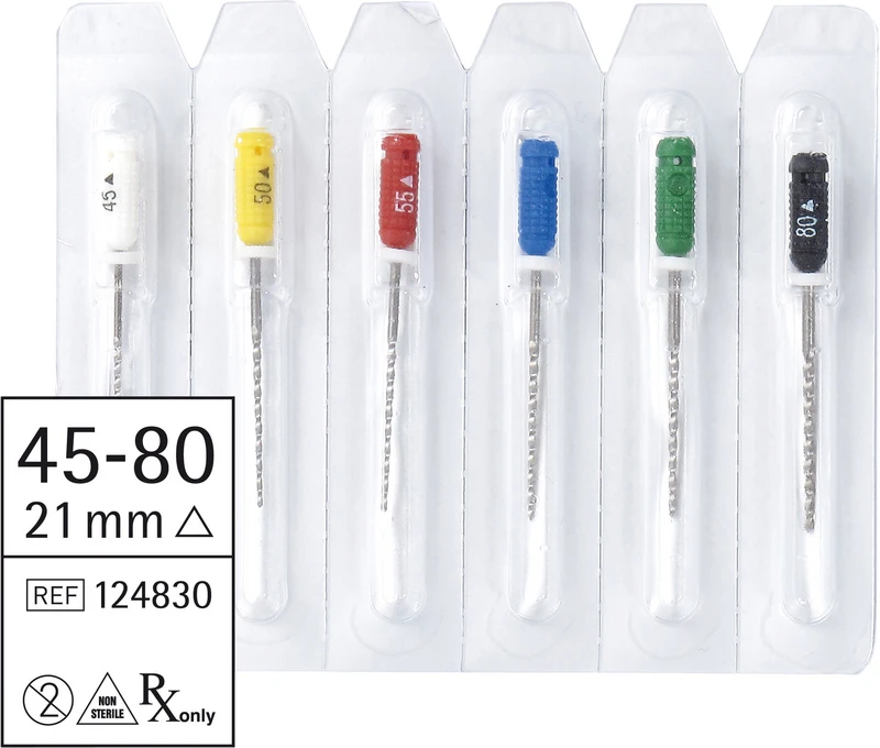 Høyverdig og ISO-konformt nøyaktig fremstilt endo-instrumenter “”Made by Sendoline””. De har en veldig god skjæreytelse og høy bruddstyrke. Instrumentene er fargekodet etter ISO-størrelser og kan steriliseres opp til 200 °C. Håndtaket er sklisikkert takket være det ergonomiske gripeområdet, og instrumentet er dermed trygt å bruke. I en blisterpakke, som sikrer hygienisk enkeltuttak, finnes det 6 instrumenter som er utstyrt med en silikonplugg. Det er et engangsprodukt som krever sterilisering før bruk.