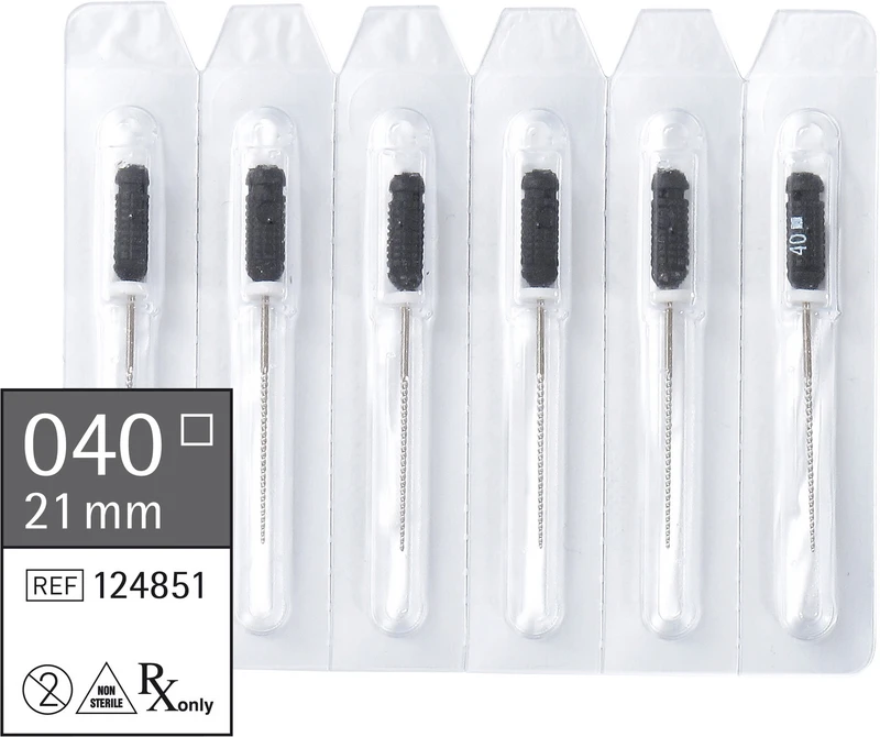 Høyverdig og ISO-konformt nøyaktig fremstilt endo-instrumenter “”Made by Sendoline””. De har en veldig god skjæreytelse og høy bruddstyrke. Instrumentene er fargekodet etter ISO-størrelser og kan steriliseres opp til 200 °C. Håndtaket er sklisikkert takket være det ergonomiske gripeområdet, og instrumentet er dermed trygt å bruke. I en blisterpakke, som sikrer hygienisk enkeltuttak, finnes det 6 instrumenter som er utstyrt med en silikonplugg. Det er et engangsprodukt som krever sterilisering før bruk.