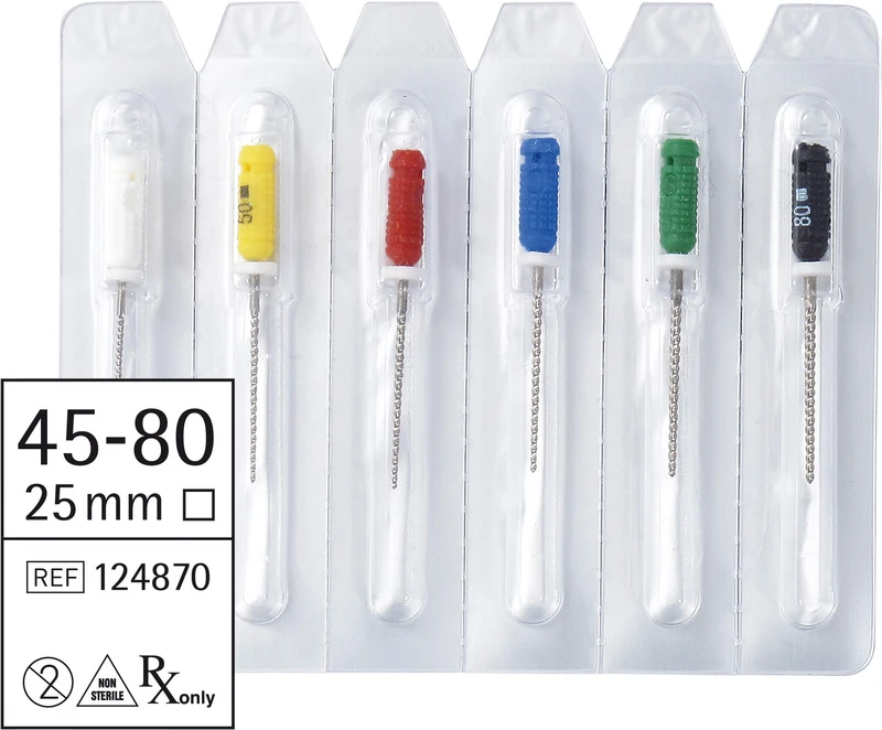 Høyverdig og ISO-konformt nøyaktig fremstilt endo-instrumenter “”Made by Sendoline””. De har en veldig god skjæreevne og høy bruddstyrke. Instrumentene er fargekodet etter ISO-størrelser og kan steriliseres opp til 200 °C. Grepet er sklisikkert takket være det ergonomiske gripeområdet, og instrumentet er dermed trygt å bruke. I en blisterpakke, som sikrer hygienisk enkeltuttak, finnes det 6 instrumenter som er utstyrt med en silikonstopper. Det er et engangsprodukt som krever sterilisering før bruk.