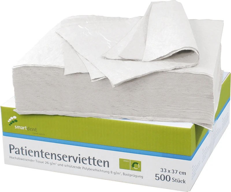 Pasientbeskyttelsesserviett laget av to lag papirfleece med en polyetylenbelegg. Papirfleece er svært absorberende. Polyetylenbelegget beskytter pasienten mot forurensninger og fuktighet.