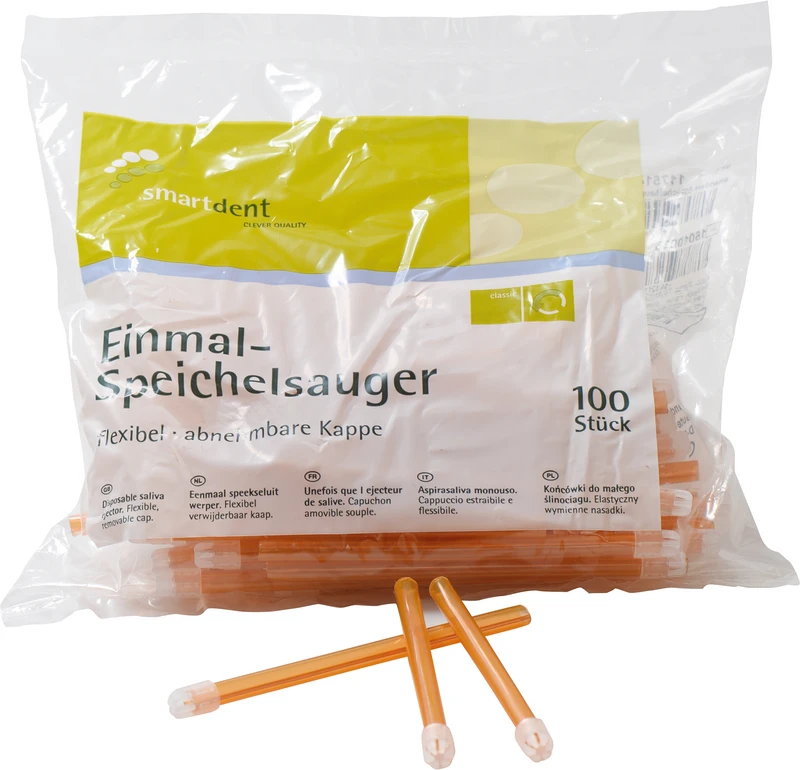 Fleksible, formstabile engangs-spyttsugere, passer for alle enheter. Med avtakbar hette. Lengde 12,5 cm.