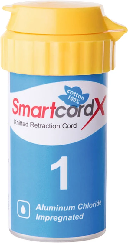 Smartcord X er en strikket, impregnert retraksjonsfaden laget av unike mikrofasonger. Mikrofasongene kjennetegnes ved sitt ekstremt lave fuktighetsinnhold samt høy levetid og enkel håndtering. Egenskapene gjør Smartcord X til en spesielt absorberende retraksjonsfaden som ikke fliser seg. Faden er impregnert med aluminiumklorid-heksahydrat og dermed umiddelbart klar til bruk. Fordeler og egenskaper: *Lengde (254 cm) * Ligger veldig godt. * Fliser ikke. * Høyt sugeevne * Tilgjengelig i 5 forskjellige størrelser. * Emballasjedose inkl. vindu, lengdemåling og kutteanordning.
