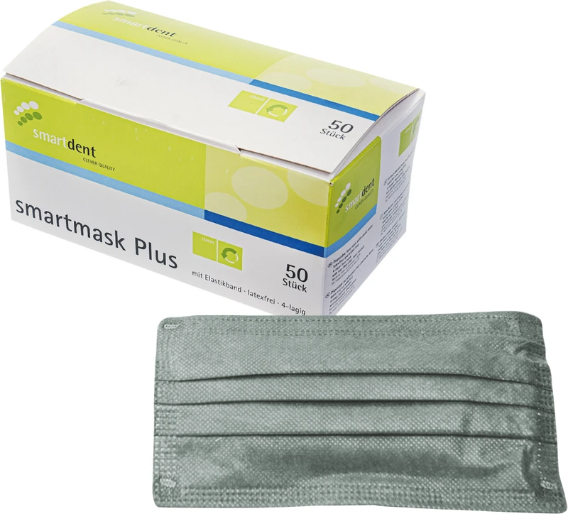 Den nye smartmask Plus er en 4-lags engangs munnbind med elastisk bånd. Den imponerer med sin kvalitet og passform. smartmask Plus har et fiberfritt filtermedium og er latex- og nikkelfri.