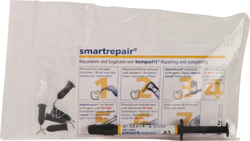 Systemreparasjonsmateriale for tempofit, ideell konsistens, lysherdende. For raske, presise reparasjoner i økonomiske direkte applikasjonssprøyter med utskiftbare applikasjonsnåler. Tilpasset fargene til tempofit. Med smartbond one-step bonding for absolutt sikker vedheft av reparasjonsmaterialet på reparasjonsstedet.