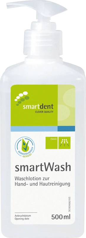smartWash er en mild vaskelotion for hånd- og hudrensing med en behagelig, frisk duft. Den gir en dyp rensing, fremmer sunn, glatt hud og er spesielt egnet for sensitiv hud, tilsvarende for daglig bruk, (nøytral pH-verdi på 5,5). 500 ml og 1 liter flasker er egnet for Eurodispenser.