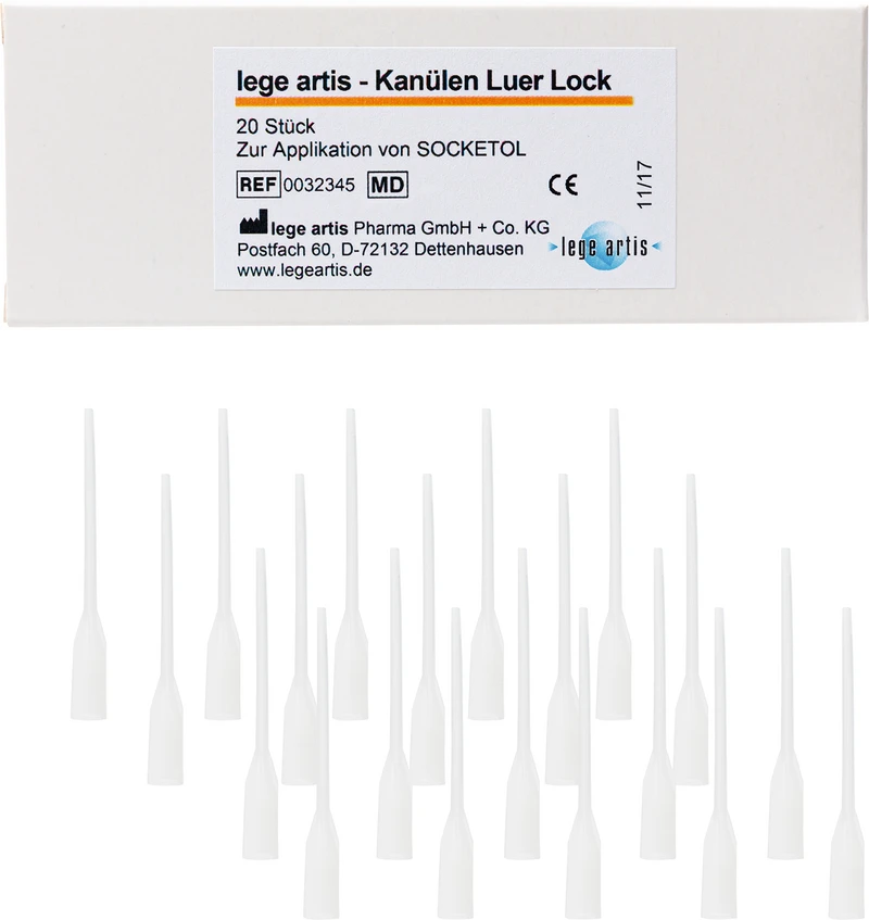 Luer-Lock-kanyler fra lege artis: For applikasjon av SOCKETOL, individuelt tilpassbare applikatorer.