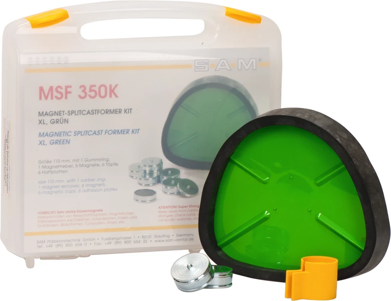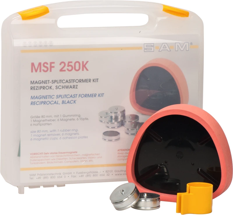 • AXIOPIN: parallell trinnpinne, med plasthylse, ideell modellsokkelhøyde for MSF Magnet – Splitcastformer, sikker retensjon av modellstumpen