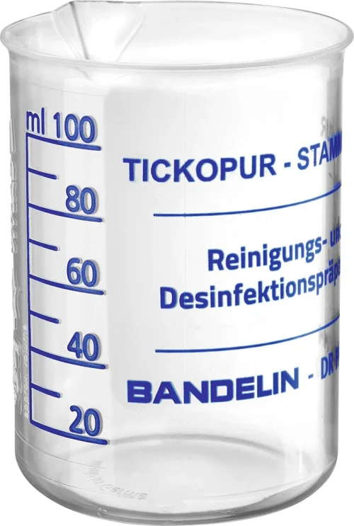 Målebeger for nøyaktig dosering av volumene fra doseringstabellen for rengjørings- eller desinfeksjonsmidler.