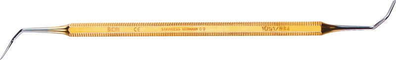 Den vinklete spatelen gir en spesielt ergonomisk håndtering ved modellering av vertikale flater (f.eks. i fronttannområdet eller for konturering av ytterflatene på sidetennene).