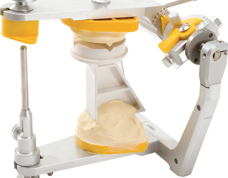 Splitcast prøvesokkel sikrer og kontrollerer dimensjonen mellom monteringsplatene i artikulatoren. Splitcastet dannes samtidig ved gipsing på den øvre monteringsplaten. Etter herding monteres det på den nedre platen. Det tanntekniske arbeidet kan sendes sammen med prøvesokkelen. Ved hjelp av denne prøvesokkelen kan også artikulatorkalibreringen kontrolleres. Splitcast prøvesokkel er egnet for alle monteringsplater og artikulatorer.