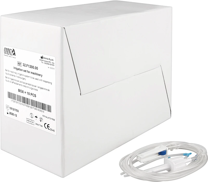 Sprayschlauchsysteme. Riktig vanning med en kjølevæske under posisjoneringen av implantatet er viktig for dets innheling og den tilknyttede suksessen. De mekaniske irrigasjonssystemene fra OMNIA tilbyr følgende alternativer: a. Monoirrigasjon innvendig b. Monoirrigasjon utvendig c. Innvendig og utvendig irrigasjon Det praktiske endestykket gjør det lettere å koble irrigasjonsledningen til håndstykket og tillater tilkobling av våre slanger til alle nåler for kjøling av de forskjellige håndstykkene, som ofte har forskjellige diametre.