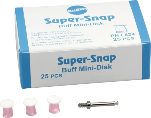 Super-Snap Buff Disks og Buff Mini-Disks er skiver med filtbetrukket frontside som «holder» de dyre poleringspastaene under bruk og forhindrer sprut i stor grad. De tynne, fleksible skivene tilpasser seg alle tannoverflater. De er uten metall sentrum og uten eksponert mandrel for å forhindre misfarging eller rilleformasjoner i kompositt. En lett polering er tilstrekkelig for å oppnå høyglans på keramikk og kompositt.