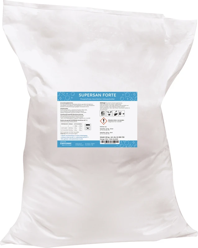 I henhold til § 18 i smittevernloven for kjemotermisk tøy-desinfeksjon. RKI-listet virkningsområde A + B. Egnet for alle temperaturområder og maskintyper. SUPERSAN FORTE-prosedyre 40 – 90°: Dosering i g/kg tørrvask: Ikke bruk sammen med klor.