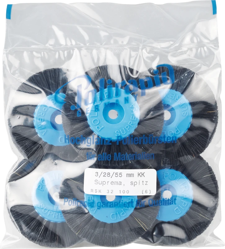 Suprema Rundbürsten med tre- (HK) eller plastkjerne (KK). Rundbørster med ekstra stive Chungking-bust i spiss og bred utførelse. Med forskjellige kjerne-diametre og bustlengder.