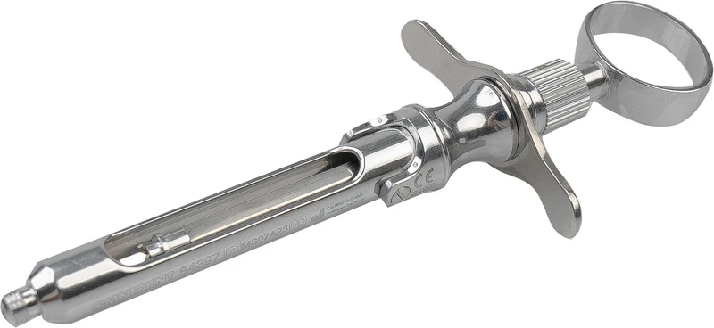 Zylinderampullen-Spritze med 3 aspirasjonshaker og låsing, 1,8 ml, metrisk.