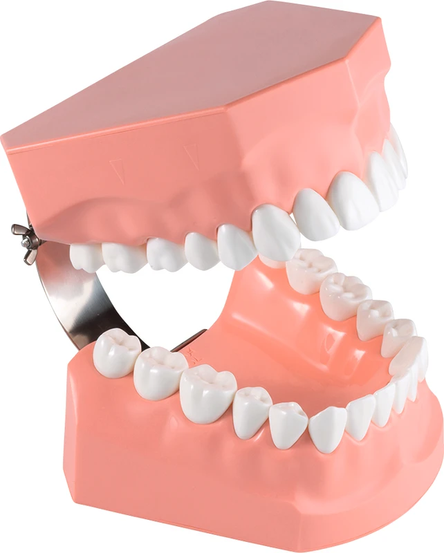Modellpar for tannpleieinstruksjon; alle tannmellomrom er utformet for å demonstrere riktig bruk av tanntråd o.l. Tann 14 og 16 er uttakbare.