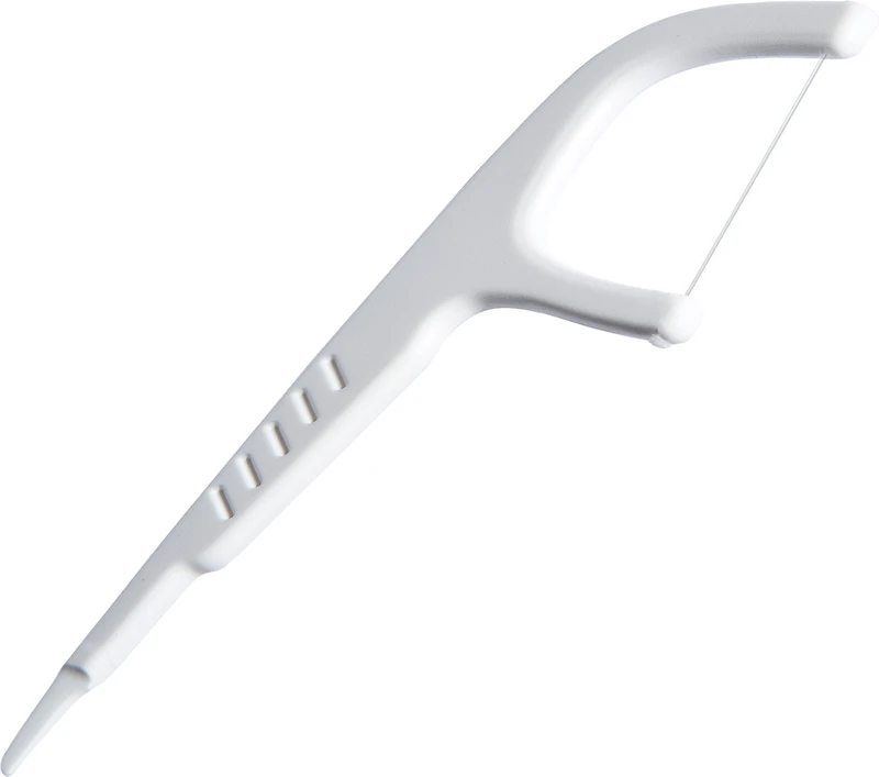 Ideell kombinasjon av tanntråd og tannpirker. Uvokset tanntråd, stramt spent på et håndterlig håndtak. Praktisk kombinasjon.