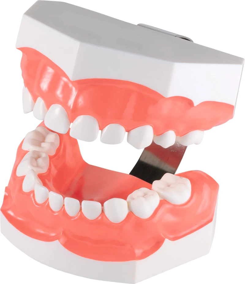 Modellpar, bestående av melketenner, med 4 tannmellomrom for demonstrasjon av riktig bruk av tanntråd.
