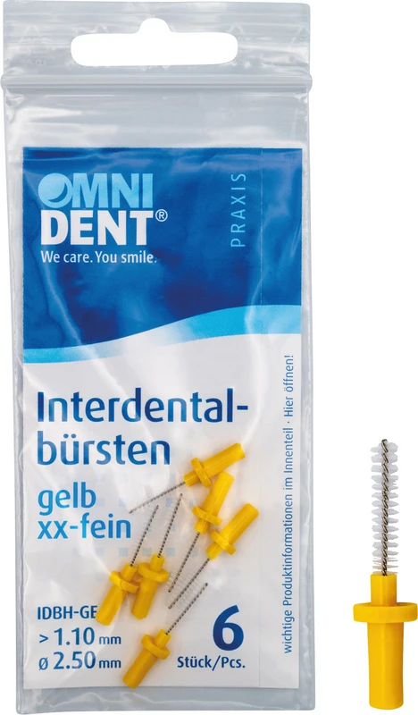 De allsidige interdentalbørstene i 10 forskjellige varianter for bruk i holder. Endestykke i fargekodet plast (gjennomfarget). Børster på plastifisert tråd. De forskjellige størrelsene tillater valg av optimal børste for hvert tannrom. Børstefestet på interdentalbørstene med det ideelle forholdet mellom børstelengde og børstediameter gjør det mulig å holde tenner og tannkjøtt hygienisk og sunt.
