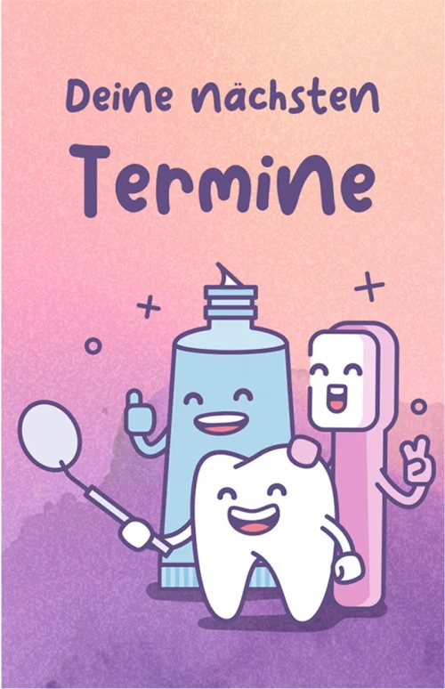 Planlegg de neste avtalene for dine små pasienter med de nyutformede Terminkarten i “Zahnbuddies”-design.