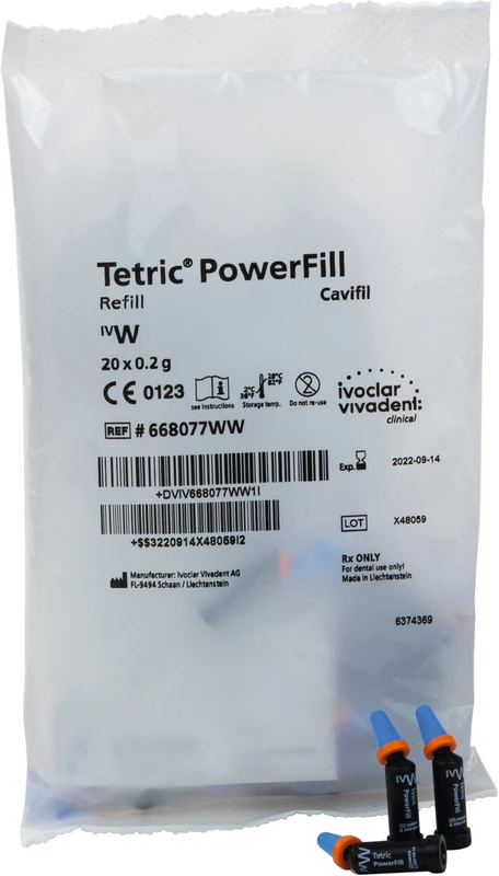 Tetric® PowerFill er et formbart, lysherdende og røntgentett 4 mm-composite med en eksponeringstid fra 3 sekunder for direkte fyllingsterapi i sidetannområdet. Fås i 3 emaljelignende universalfarger IVA, IVB og IVW.