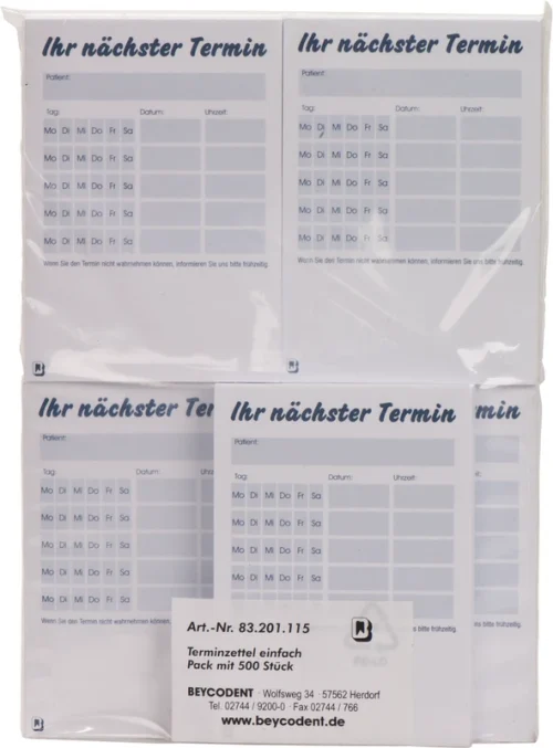 Med dette Terminzettel i praktisk format 75?×?105?mm holder du alltid oversikten over timeplanen til pasientene dine. Ideell for lege- og tannlegepraksiser samt terapeutiske institusjoner.