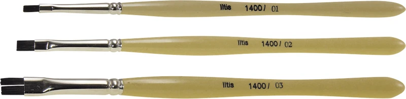 | Variant | <b>Sett 1400</b> 3 pensler (nr. 1, nr. 2, nr. 3) flate, spatel-formet, Iltishaar |