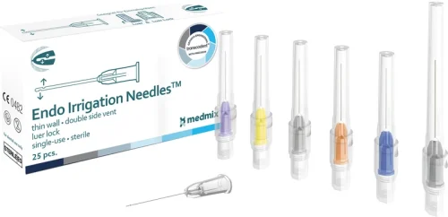transcodent™ Endo Irrigation Needles er spesialdesignet for en effektiv og grundig skylling over hele lengden av rotkanalen. De tynne engangsspylnåler gir en eksepsjonell fleksibilitet for å trenge inn i kronglete rotkanaler. Nåler har en eller to sideåpninger for en skånsom, men effektiv skylling og en avrundet spiss for å unngå penetrering av apex. Endo Irrigation Needles er sterile, med en Luer-Lock-base og individuelt pakket, og et pålitelig og sikkert valg for endodontiske prosedyrer.