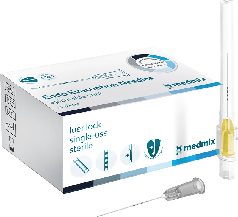 transcodent™ Endo Absaugkanülen er designet for fremragende ytelse ved endodontiske prosedyrer. De fleksible kanulene forbedrer synsfeltet samt tilgangen til rotkanalen. Den apikale laterale sugeåpningen samt den lukkede, avrundede spissen på nålen minimerer traumer på mykt og hardt vev. 4 ekstra lasermarkeringer på kanulen sikrer presis bruk over hele lengden av rotkanalen helt ned til apex. Ideell for endodontiske behandlinger som krever nøye suging, tilbyr Endo Absaugkanülen en perfekt blanding av fleksibilitet, komfort og sikkerhet.