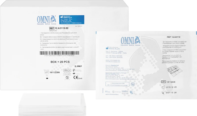 Det transparente OP-abdektøyet med klebende side for å dekke over fysiodispenseren eller kontrollenheten lar operatøren endre arbeidsprogrammet og overvåke displayene uten å påvirke steriliteten under inngrepet.