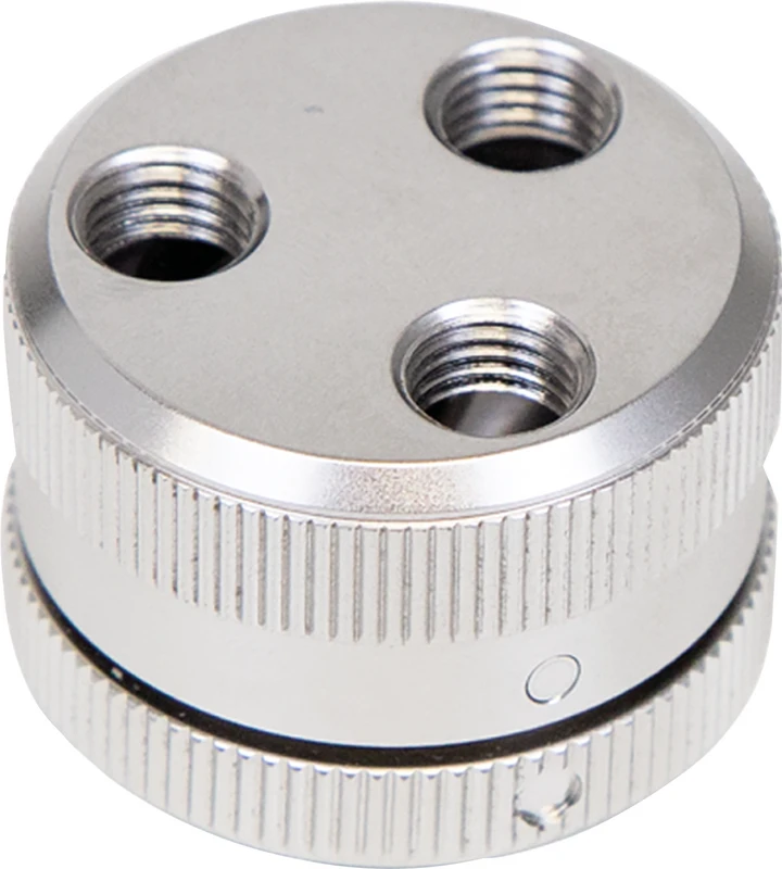 For opptil tre injektor dyser med klemfjær, Luer / Luer-Lock adapter eller slange tilkoblinger. For behandling av trange hulrom kombineres denne treveisfordeleren med injektor skinnen med sentralfilter.