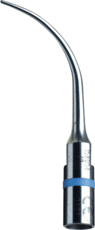 Spiss PFL – for fjerning av tannstein mellom to nabotenner i finmodus. Spissen er bøyd til venstre og muliggjør, ved tangentiell bruk, enkel tilgang til premolarer og molarer.