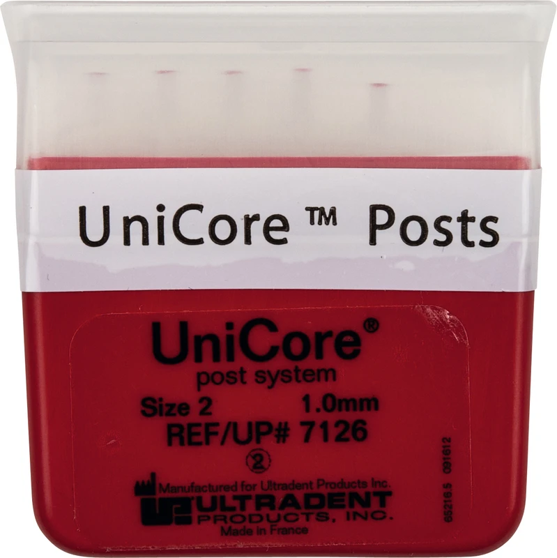 UniCore™ er en glassfiber rotstift, lik elastisk som dentin, men mer bøye-fast enn metall. Dermed er UniCore™ ikke et stivt element, men danner gjennom adhesiv forbindelse med tannen en solid, men fleksibel monoblokk. UniCore™ er tannfarget, translucens (for initial lysherding gjennom stiften) og godt røntgensynlig. Bare en bor per størrelse er nødvendig, til forboring og også til fjerning av guttaperka, ThermaFil og andre fiberstifter fra kanalen. UniCore™ leveres i praktiske sett som kan autoklaveres og er gjenlukkbare. Stifter og bor sitter sikkert i skumgummi – dermed ingen utilsiktet spredning ved åpning av pakken. Fargekoding viser størrelsen.