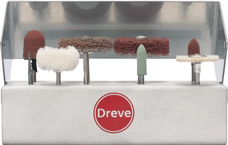 Slipesett for etterbearbeiding av alle vakuumformede formdeler, i en robust og praktisk bordstativ i V2A.