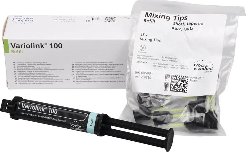 Sett 7,5 g QuickMix sprøyte, 2 g sprøyte Quick Up LC, 4 ml adhesiv, 5 ml QuickMix sprøyte Fit Test C&B