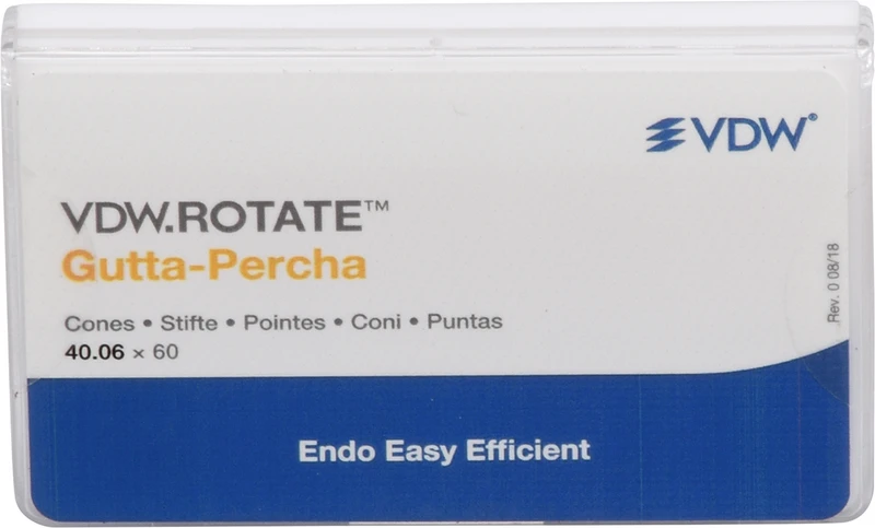 I tillegg til VDW.ROTATE™ filer tilbyr vi et komplett produktsortiment fra preparering til obturasjon. Gutta-percha er tilgjengelig i Taper .04 og .06 i ulike ISO-størrelser.