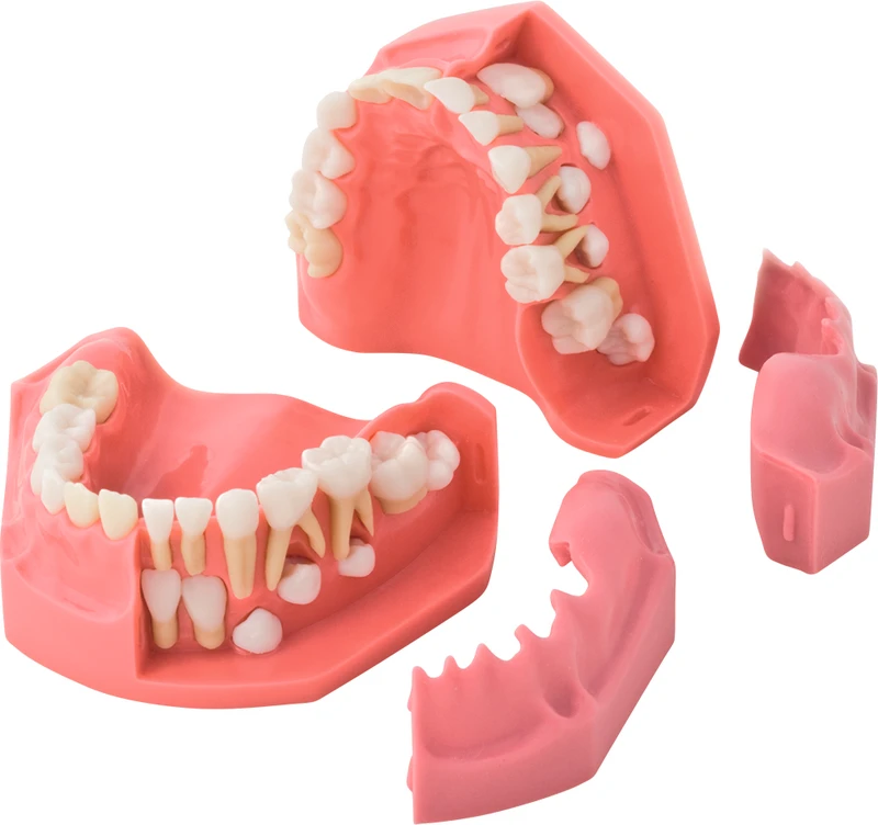 Vekstmodellpar, venstre med vestibulært avtakbar gingiva – viser tannutviklingen. Høyre viser tannfrembruddet.