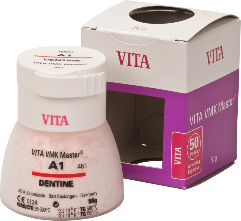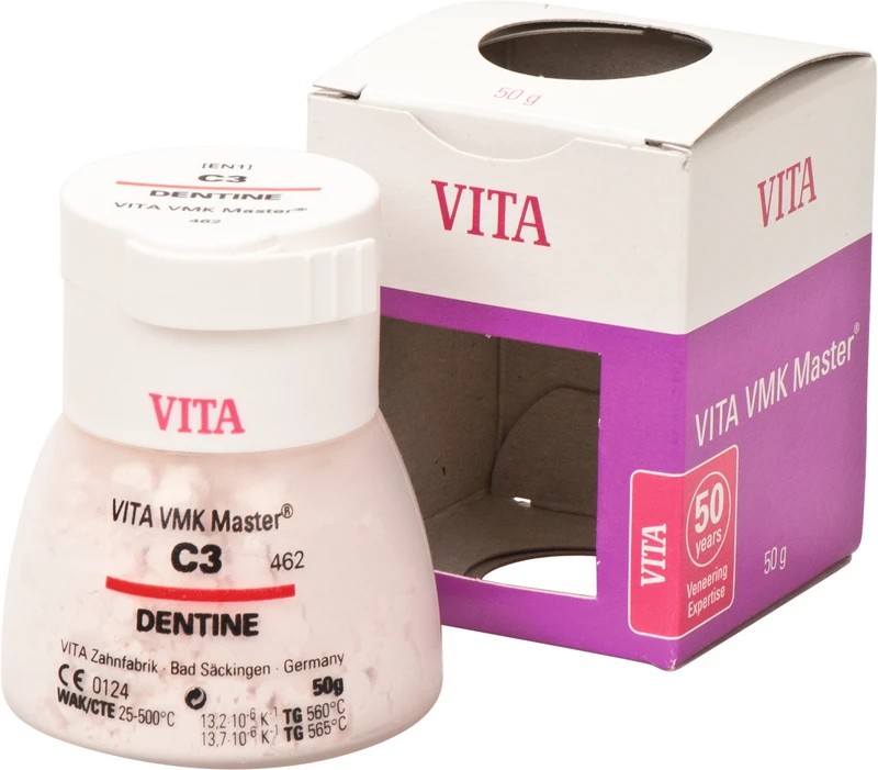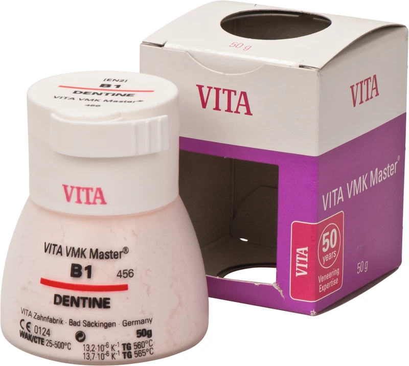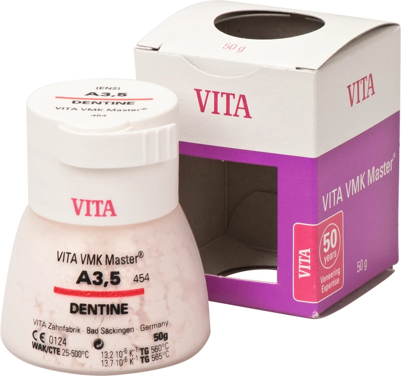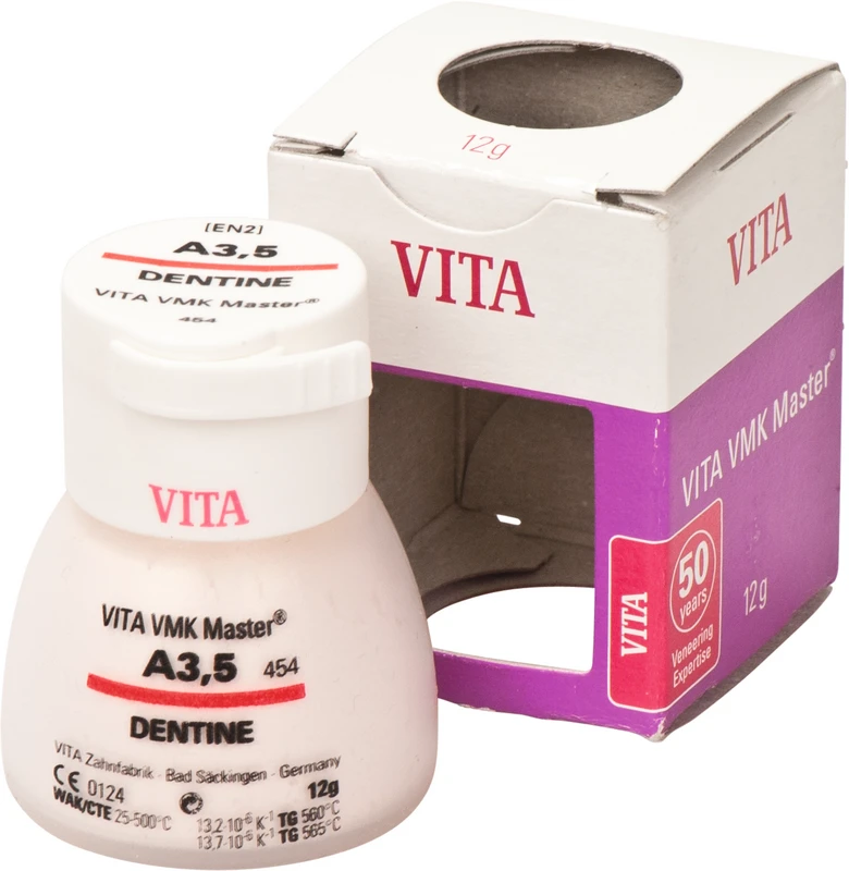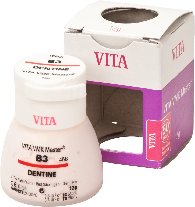 VITA VMK Master er en naturlig feltspat-oppbyggingskeramikk for klassiske påbrenningslegeringer (ca. 13,8 – 15,2 µm/mK).