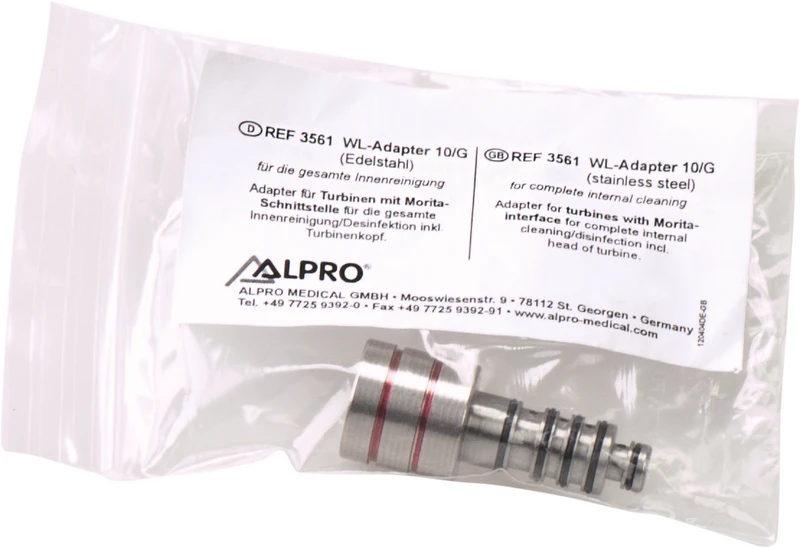 WL-Adapter 10/G (Edelstahl): Adapter für Turbinen mit Morita-Schnittstelle für die gesamte Innenreinigung/Desinfektion inklusive Turbinenkopf.