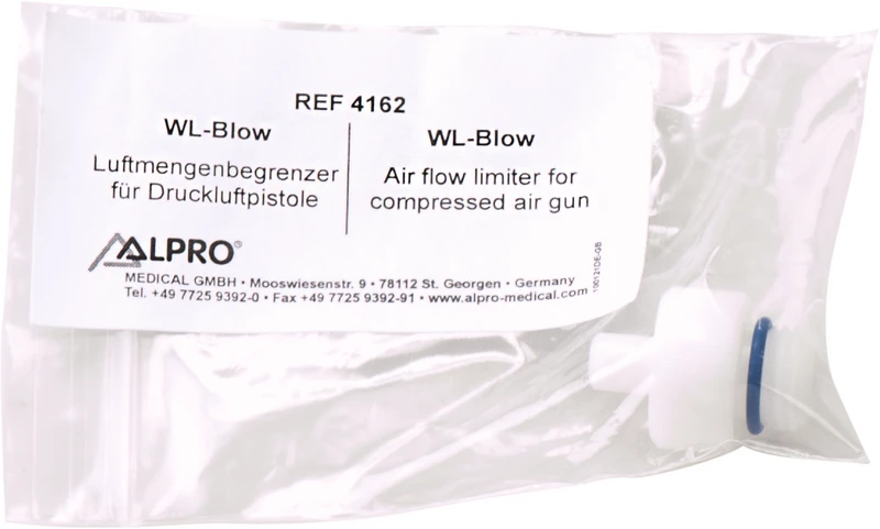 Utblåsningsanordningen WL-Blow med integrert luftmengdebegrensning brukes til å blåse ut, tørke og støtte rengjøring etter bruk av WL-clean/WL-cid (rengjøring/desinfeksjon) på innvendige flater av hulroms- og overføringsinstrumenter.* WL-Blow er kun til bruk i prepareringsrommet, det kan kobles til den eksisterende oljefrie tørkeluftanlegget!**